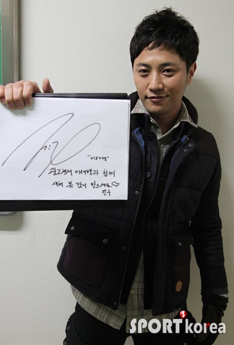 사진 속 진구는 `광고천재 이태백과 함께 새해 복 많이 받으세요`라는 직접 친필로 적은 메시지를 들고 드라마 속 복장을 그대로 한 채 이태백 다운 패기 넘치는 미소를 짓고 있다.