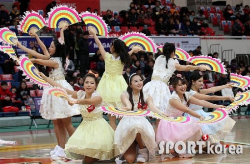 `2013 KB 국민카드 프로농구` 울산 모비스 피버스와 창원 LG 세이커스의 경기가 19일 오후 울산 동천체육관에서 열렸다. 경기전 모비스 치어리더들이 설날을 맞아 한복을 입고 멋진 오프닝 공연을 펼치고 있다.