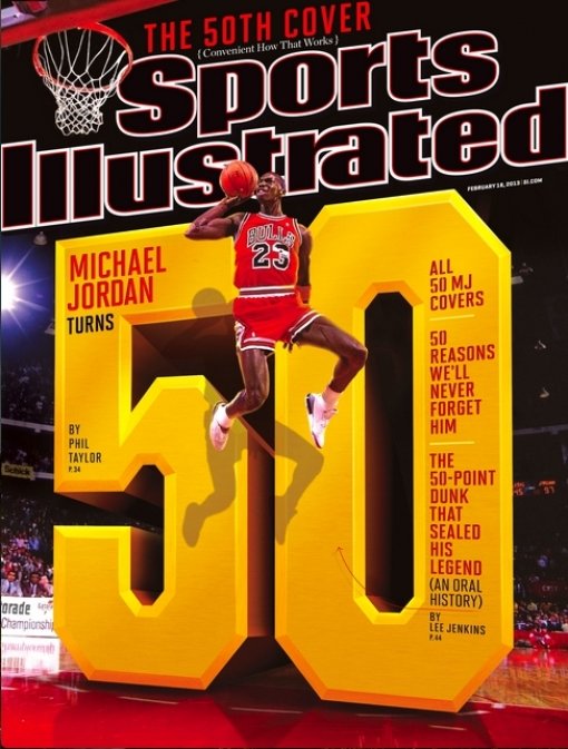 1위에 꼽힌 것은 조던이 도미니크 윌킨스와의 명승부 끝에 ‘아름다운’ 자유투라인 덩크를 선보이며 덩크왕에 등극했던 1988년이 뽑혔다. 이에 SI는 오는 17일이 조던의 50번째 생일임에 착안해 이 사진을 표지에도 실었다. 조던은 이로써 SI의 표지를 50번째로 장식, 역대 최다 표지 장식 기록을 이어갔다.