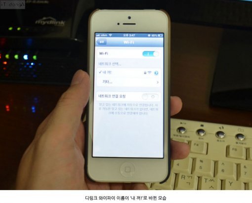 필자는 무선 네트워크 이름에 '내 꺼!'라고 입력해봤다. 아이패드, 아이폰3Gs, 아이폰5 다 잘 접속된다. 다만, 어머니께서 사용하시는 '프라다폰(안드로이드폰)'의 경우 와이파이 목록에서 한글이 깨지며 제대로 접속되지 않더라. 이처럼 간혹 한글로 무선 네트워크 이름을 입력했을 경우, 와이파이 접속이 잘 되지 않는 경우도 있으니 참고하도록 하자('iT dongA'라는 영어 이름으로 바꾼 이후로는 접속이 잘 되더라).