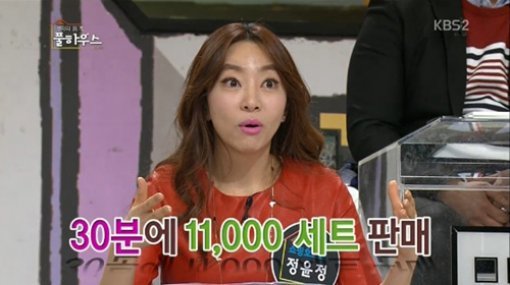 이어 정윤정은 “제일 많이 팔았을 때 30분에 11,000세트를 팔아봤다. 이것을 금액으로 환산하면 내가 1분에 1억 원 이상의 판매액을 기록한 셈이다”라고 밝혔다.