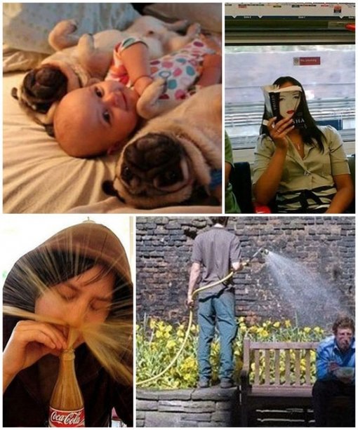 또 '광대 자극 사진'에는 마시려던 콜라가 터져 코에 음료가 들어가는 모습이나 정원에 물을 주던 정원사가 남자를 발견하지 못해 물세례를 맞는모습이 보는 이들의 웃음을 자아냈다.