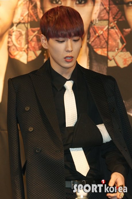 그룹 B.A.P 힘찬이 24일 오후 5시 서울 송파구 방이동 올림픽 뮤즈홀에서 열린 첫 단독콘서트 기자회견에 참석해 포토타임을 갖고 있다.