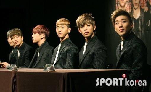 그룹 B.A.P가 24일 오후 5시 서울 송파구 방이동 올림픽 뮤즈홀에서 열린 첫 단독콘서트 기자회견에 참석해 취재진의 질문에 귀 기울이고 있다.