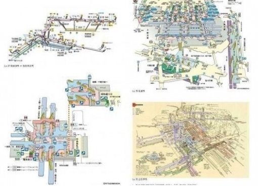 공개된 사진은 미로 같은 일본 지하철 역 지도는 일본 여러 지하철역의 구조와 출입구, 화장실 등을 설명해놓은 것.