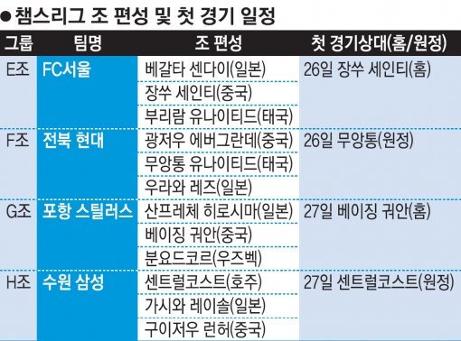 ■ 亞챔스리그 오늘부터 조별리그 돌입