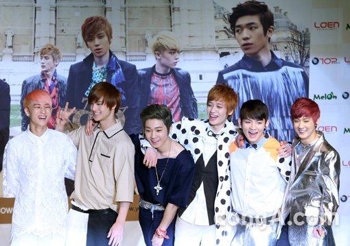 6인조 그룹 틴탑이 26일 오후 서울 마포구 인터파크 아트센터에서 열린 정규앨범 발매 기념 ‘No.1’ 쇼케이스에서 포토타임을 하고 있다.