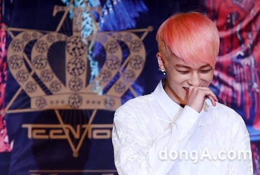 6인조 그룹 틴탑의 엘조가 26일 오후 서울 마포구 인터파크 아트센터에서 열린 정규앨범 발매 기념 ‘No.1’ 쇼케이스에서 포토타임을 하고 있다.