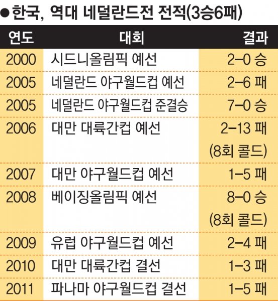 네덜란드는 제3회 월드베이스볼클래식(WBC)의 복병이다. 2009년 제2회 WBC에서 네덜란드는 도미니카공화국을 2차례나 격파하는 이변을 일으키며 8강에 올랐다. 2011년 파나마에서 열린 야구월드컵에선 쿠바를 2차례나 깨고 우승을 차지했다.