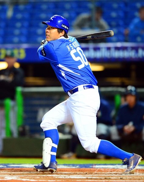 류중일 감독이 이끄는 월드베이스볼클레식(WBC) 대표팀이 4일 저녁 타이중 인터콘티넨탈구장에서 호주와 본선 두번째 경기를 가졌다. 1회초 1사 만루 타석때 김현수가 2타점 적시타를 치고 있다.