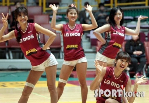 5일 오후 창원실내체육관에서 열린 `2012~2013 KB국민카드 프로농구` 창원 LG 세이커스와 울산 모비스 피버스의 경기에서 LG 치어리더가 흥겨운 율동을 펼치고 있다.