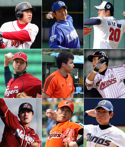 SK 이명기, 삼성 백정현, 두산 김강률(윗줄 왼쪽부터), KIA 앤서니, 롯데 김문호, LG 정주현(가운뎃줄 왼쪽부터), 넥센 박동원, 한화 김혁민, NC 이재학(아랫줄 왼쪽부터). 사진|SK 와이번스·삼성 라이온즈·두산 베어스 ·롯데 자이언츠·넥센 히어로즈·스포츠동아DB