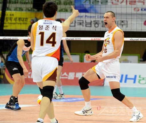 외국인 공격수 안젤코의 맹타에 KEPCO는 삼성화재를 물리치고 길고도 길었던 25연패 늪에서 탈출했다. 스포츠동아DB
