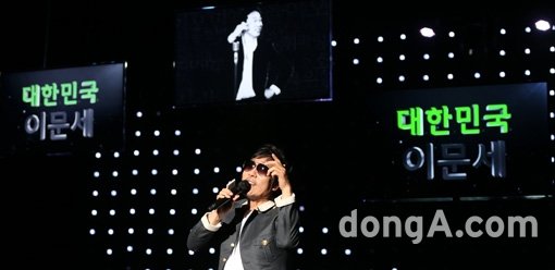올해로 데뷔 30년째를 맞이한 가수 이문세가 12일 오후 서울 서강대 메리홀에서 열린 ‘2013 대.한.민.국 이문세’ 제작발표회에서 열창을 하고 있다. 이날 진행은 김제동이 맡았고, 가수 윤도현 등 후배 뮤지션이 참석했다.