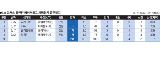 갑자기 흔들리는 컨트롤도 잡아야 한다. 특히 3회 아오키 노리치카, 4회 선두타자 고메스에게 2차례나 스트레이트 볼넷을 내준 점이 아쉽다. 이날 스트라이크는 45개. 스트라이크 비율(57.7%)도 좋지 않았다. 가장 큰 관건은 직구 구속을 끌어올리는 일이다. 직구가 정상적으로 살아나야 장기인 체인지업을 비롯한 변화구가 더 효과를 발휘할 수 있다. 류현진은 “4회 상황을 되돌리고 싶다”며 ”제대로 맞은 안타는 하나뿐이었는데 실점한 것이 아쉽다”고 말했다. 다음 등판으로 예상되는 17일 텍사스전에선 진일보한 구위와 투구 내용을 보여줄 필요가 있다. 시범경기도 얼마 남지 않았다.