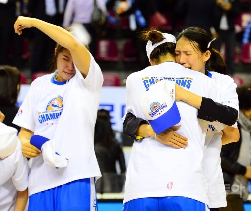 챔프전 최우수선수(MVP)로는 이날의 14점·7리바운드를 포함해 1차전 17점·7리바운드, 2차전 16점·6리바운드로 맹활약한 임영희가 선정됐다. 임영희는 이날 3쿼터 종료 3분 전 50-36으로 스코어를 벌리는 쐐기 3점슛을 터뜨려 극적인 장면의 주인공이 되기도 했다. 한때 은퇴까지 고민하다 4년 전 우리은행에 둥지를 튼 뒤 농구인생의 전성기를 맞은 임영희다. 그 누구보다 감격적인 순간일 수밖에 없다.