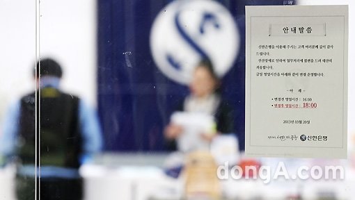 KBS, MBC, YTN 등 주요 방송사와 금융기관 등 내부 전산망이 마비된 20일 오후 서울 중구 신한은행 본점에서 관계자들이 업무를 재개하고 있다.