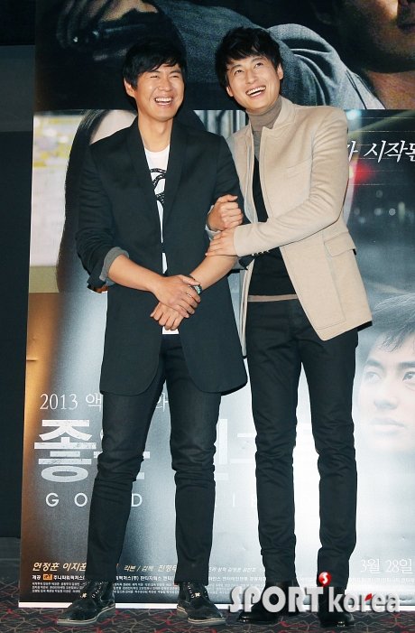 배우 연정훈과 이지훈이 21일 오후 4시 30분 서울 왕십리 CGV에서 열린 영화 ‘좋은 친구들’ 시사회에 참석해 포토타임을 갖고 있다.