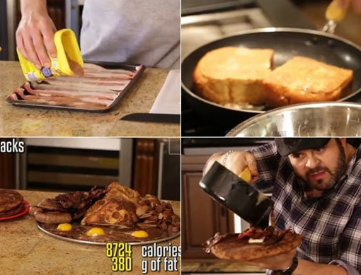 에픽 밀 타임은 대부분의 음식에서 베이컨을 자주 활용하는데, 이날 공개된 ‘초콜릿 폭탄 아침밥’ 역시 베이컨이 기본으로 활용된다.