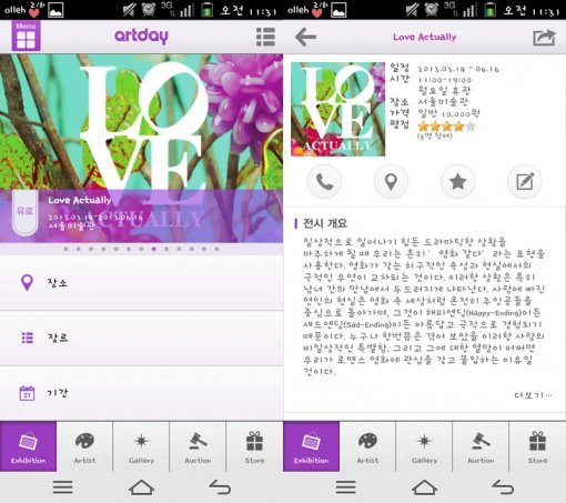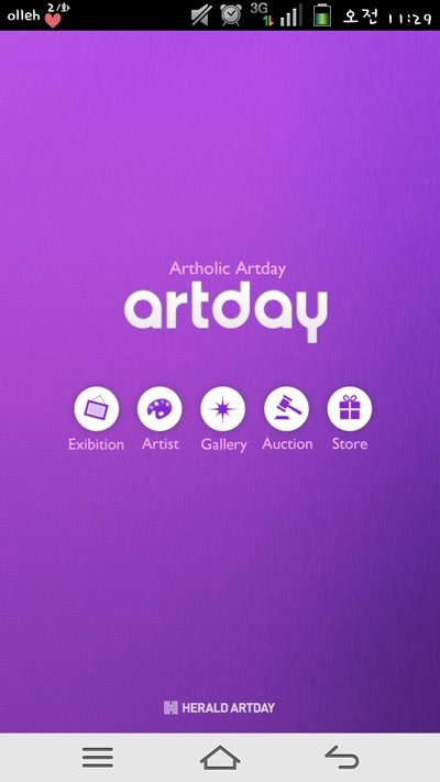아트데이는 '헤럴드'사가 만든 미술정보가이드 앱으로, 각종 유/무료 미술전시 정보와 아티스트, 경매, 라이프스타일 상품 등을 볼 수 있는 앱이다. 지난 1월에는 '코리아모바일어워드 제2차 베스트앱 공모전'에서 KT상을 수상하기도 한 만큼 다양한 미술정보를 탑재하고 있다. 앱은 이동통신사 3사 마켓은 물론 구글 플레이와 애플 iOS에서 내려받을 수 있다. 앱 외에도 온라인 홈페이지에 별도의 홈페이지가 마련돼 있으니 PC로 이용할 수도 있다.