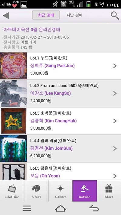 이외에도 아트데이의 또 한가지 특징은 'Auction', 앱에서 바로 경매에 참여할 수 있다는 점이다. 아트데이 회원가입 후 작품을 검색해 선택하고 응모하면 경매에 참여할 수 있다. 경매가 낙찰된 후에는 해당 금액을 입금하면 작품을 받아볼 수 있다.