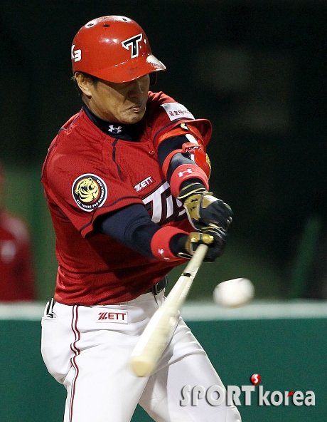 2일 저녁 대전한밭야구장에서 열린 `2013 프로야구‘ 한화이글스과 KIA타이거즈의 경기 3회초 2사 1, 2루에서 KIA 김주찬이 2타점 적시 3루타를 치고 있다.