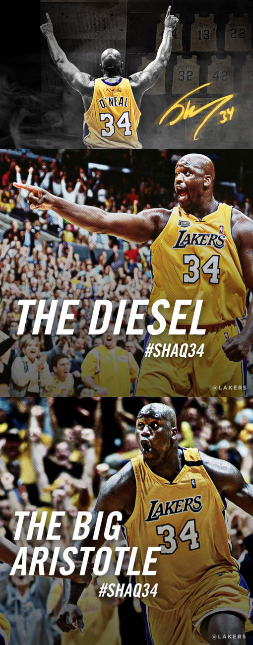 오닐은 3일(한국 시각) LA 스테이플스 센터에서 열린 미프로농구(NBA) 정규리그 댈러스 매버릭스와의 경기 하프타임에 열린 자신의 영구결번 행사에 참석했다. 오닐의 유니폼은 LA 레이커스의 영원한 레전드 매직 존슨(54)의 곁에 걸리게 됐다.