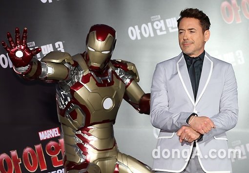 배우 로버트 다우니 주니어가 4일 오전 서울 영등포구 콘래드호텔에서 열린 영화 ‘아이언맨3’ 내한 공식 기자회견에서 포토타임을 하고 있다.