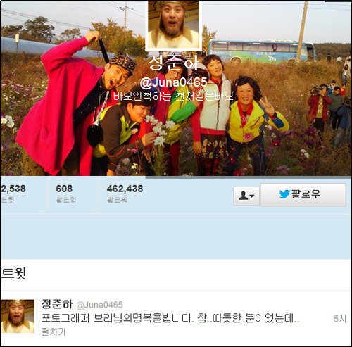 정준하는 8일 자신의 트위터에“포토그래퍼 보리님의 명복을 빕니다. 참, 따뜻한 분이었는데…”라는 애도의 글을 남겼다.