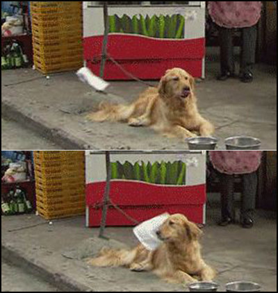 공개된 사진에는 개의 얼굴에 종이 한 장이 날아와 붙는 장면이 담겨 있다. 그런데 그 모습이 컴퓨터의 파일 전송 중 모습과 비슷해 웃음을 자아냈다.