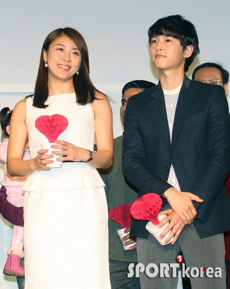 배우 하지원과 송중기가 10일 오후 서울 강남구 삼성동 코엑스 인터콘티넨탈 호텔에서 열린 ‘2013 메디컬코리아 글로벌헬스케어 유공포상 & 나눔으료 기념행사’에 참석해 홍보대사로 위촉된 후 미소를 짓고 있다.
