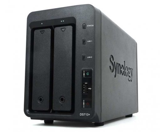시놀로지 DS713+의 외견은 전형적인 2베이(bay, HDD를 꽂는 공간) NAS의 형태다. 크기는 157 x 103.5 x 232(mm)로 가정용 토스터와 유사하다. 기본적으로 2대의 HDD로 최대 8TB의 용량(4TB x 2)을 구성할 수 있는데, 별도로 판매되는 5베이 확장장치인 DX513을 추가로 연결하면 최대 7대의 4TB HDD를 꽂아 총 28TB의 거대한 용량을 구현하는 것도 가능하다.
