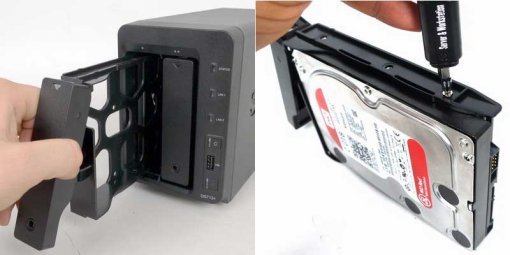 외견을 살펴봤으니 이제는 사용 준비를 할 차례다. NAS를 쓰기 위해서 가장 먼저 해야 하는 작업은 바로 HDD 장착이다. DS713+는 HDD 베이 전면의 아래 부분을 살짝 눌러주면 베이가 튀어나오니 여기에 HDD를 나사로 고정하고 다시 본체에 밀어 넣으면 된다. 전반적인 HDD 탈부착 과정은 누구나 할 수 있을 정도로 쉽다.