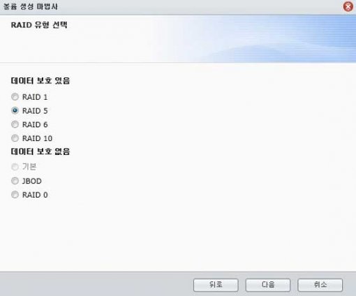 DS713+의 초기 설정에서 가장 신경 써야 할 점은 관리자 ID와 비밀번호의 설정, 그리고 RAID(Redundant Array of Independent Disks) 구성 방식의 선택이다. RAID란 복수의 디스크를 하나로 묶어 쓰는 것으로, 이를 이용하면 2대 이상의 HDD를 하나의 볼륨(드라이브)로 구성하는 것도 가능하다.