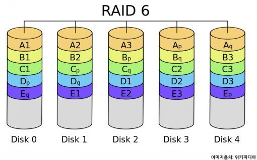 패리티 정보량이 늘어난 만큼 RAID 5에 비해 1대의 HDD가 더 필요하다. 따라서 최소 4대의 HDD가 있어야 RAID 6 구성이 가능하다. 그리고 사용자가 데이터를 저장할 수 있는 용량은 전체 HDD의 총 용량에서 HDD 2대 분량만큼 줄어든다. 2TB HDD 6대를 쓰더라도 총 가용용량은 8TB가 되는 셈이다. RAID 6는 RAID 5외 비슷하면서도 용량이나 성능보다는 안정성에 조금 더 비중을 둔 RAID 구성이다.