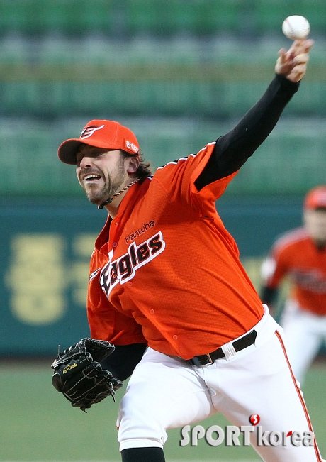 11일 저녁 대구시민야구장에서 열린 '2013 프로야구' 삼성라이온즈와 한화이글스의 경기에서 한화 선발투수 이브랜드가 1회말 마운드에 올라 역투하고 있다.