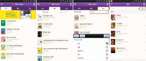 이제 스토어로 이동해 무슨 콘텐츠가 있는지, 어떻게 이용하면 되는지 살펴보자. 콘텐츠를 찾는 방법은 4가지로, ‘추천’, ‘랭킹’, ‘신규’ 탭과 ‘검색’이다. 추천 탭은 카카오가 추천하는 콘텐츠로, 이 탭에 들어올 때마다 콘텐츠 목록이 바뀐다. 랭킹 탭은 콘텐츠를 인기 순과 최고매출 순으로 정렬해 볼 수 있는 탭이다. 신규 항목은 신규 콘텐츠를 카테고리별로 모아볼 수 있는 탭이다. 만약 특정 콘텐츠를 이름으로 찾고 싶다면, 왼쪽 상단에 돋보기 모양 버튼을 눌러 검색하면 된다. 스토어에는 허영만의 식객 같은 인기 만화가 작품은 물론 2AM의 어느 봄날 같은 유명 가수 앨범 등 다양한 장르의 콘텐츠가 있는 것이 눈에 띄었다.