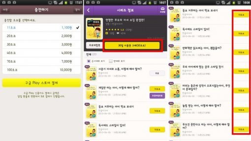무료 콘텐츠도 있다. 스토어에 있는 대부분의 콘텐츠는 ‘무료 체험판’을 갖추고 있으며, 유료 콘텐츠 중‘추천하면 무료’인 콘텐츠도 있다. 추천하면 무료는 친구 2명에게 해당 콘텐츠를 추천해 친구와 함께 무료로 감상하는 기능이다. 이런 무료 콘텐츠는 유료 콘텐츠에 비해 부실한 편이지만, 콘텐츠 구매 전에 ‘맛을 본다’고 생각하자.