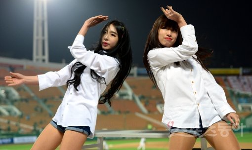 18일 오후 부산 사직야구장에서 '2013 한국야쿠르트 세븐 프로야구' 롯데 자이언츠와 넥센 히어로즈의 경기가 열렸다. 롯데 치어리더가 화려한 공연을 선보이고 있다.
