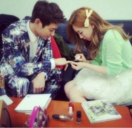 '태연 민호 대기실 포착' 사진에는 소녀시대 태연이 대기실에서 다정하게 민호의 메니큐어를 바르고 있었다.