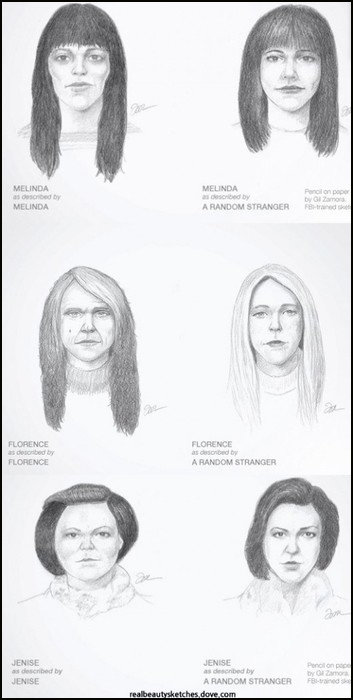 두 개의 초상화를 비교한 결과 실험 참가자들이 직접 묘사한 자신의 얼굴이 스케치 전문가의 그림보다 못생긴 것으로 나타났다.