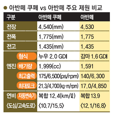주행 안정성도 만족스러웠다. 아반떼 쿠페는 기존 아반떼 대비 서스펜션 스프링과 스테빌라이저바의 강성을 보강해 출시됐다. 덕분에 고속 코너링과 고속 직진 주행 때의 안정성이 크게 향상됐다. 단단하면서도 지나치게 튀지 않는 적절한 세팅이다. 스티어링휠(운전대)의 반응도 빠르고 변속 충격도 거의 느껴지지 않을 정도로 다듬어졌다. 2000만원 이하라는 가격대(1645∼1995만원)를 고려하면 스포츠 쿠페가 가져야 할 기본기는 충분히 갖췄다고 평가된다. 지나치게 익스트림한 모델도 아니고, 그렇다고 단순한 엔트리 모델도 아닌 차를 선택하고 싶다면 아반떼 쿠페를 구매 목록 리스트에 올려볼 만하다.