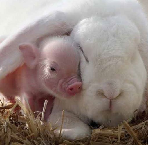 평범한 사진같아 보이지만 특이한 점은 돼지와 토끼의 크기가 전혀 딴판이라는 점이다. 몸의 크기가 돼지는 토기 같고, 토끼는 돼지 같기 때문. 토끼 옆의 돼지가 한없이 작아 보이고 토끼는 마치 뚱뚱한 돼지처럼 보여 보는 이들의 웃음을 자아낸다.
