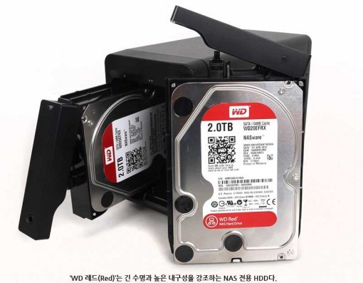 그리고 최근에는 아예 PC가 아닌 제품에 특화된 HDD도 나왔다. 블루, 블랙, 그린에 이어 작년 하반기에 출시된 ‘레드(Red)’ 시리즈는 데이터 저장용 소형 서버의 일종인 ‘NAS(Network Attached Storage)’에 최적화된 HDD다. 이 제품의 특징이라면 24시간 365일 쉬지 않고 구동해야 하는 NAS의 특성에 맞게 내구성과 안정성을 강조한다는 점이다. 이 때문에 WD 레드의 사양을 살펴보면 속도 관련 사양보다는 낮은 발열과 적은 진동, 그리고 긴 보증기간(3년) 등이 더 눈에 띈다.