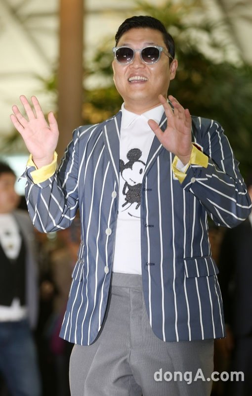 국제가수 싸이가 25일 오전 인천국제공항 출국장 앞에서 취재진을 향해 인사를 하고 있다.