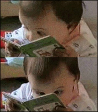 공개된 사진에는 한 어린 아기가 책을 보고 있는 모습이 담겨 있다. 특히 이 아기는 책에 빠져들 것 같이 뚫어져라 응시하고 있어 웃음을 자아냈다.