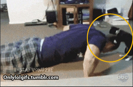 공개된 영상에는 한 남성이 열심히 팔굽혀 펴기를 하고 있는 모습이 담겨 있다. 그런데 고양이 한 마리가 마치 남성의 머리채를 잡은 채 훈련을 시키고 있는 것 같은 착각을 불러 일으켜 웃음을 자아냈다.
