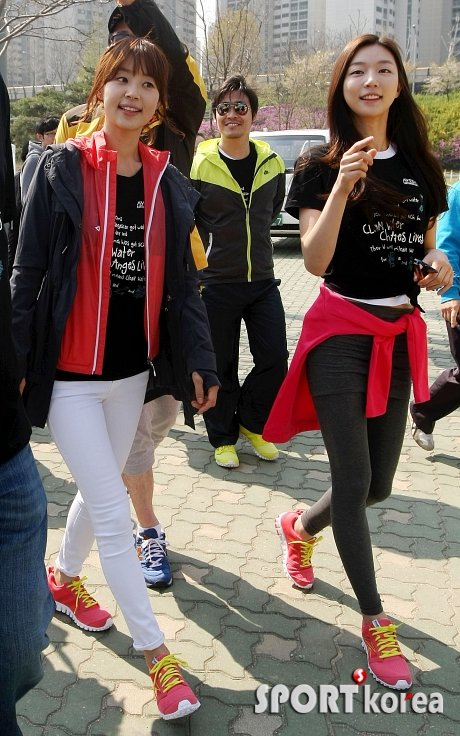 탤런트 한지혜, 하연주(오른쪽)가 27일 오전 서울시 한강시민공원 잠실지구에서 열린 2013년 지구의 달 캠페인 ‘물을 위한 걷기 대회-WALK FOR WATER’에 동참하고 있다.