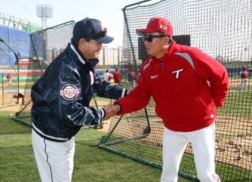 공동 1위인 두산과 KIA가 30일부터 시작하는 잠실 주초 3연전에서 빅뱅을 벌인다. 두산 김진욱 감독(왼쪽)은 현역 시절 KIA