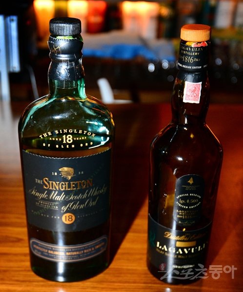싱글몰트 위스키 ‘싱글톤(왼쪽)’과 ‘라가불린’. 박화용 기자 inphoto@donga.com 트위터@seven7sola